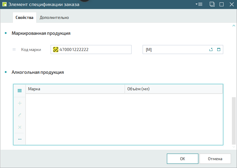 На панели Маркированная продукция выводится код марки и результат ее проверки в системе Честный знак. А на панели Алкогольная продукция - спецификация алкогольных продуктов со считанной маркой.