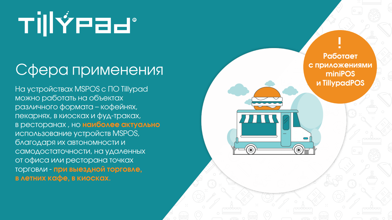 Выездная торговля и Летнее кафе с приложением miniPOSЛето – сезон открытых веранд кафе и ресторанов. При выездной торговле или в летнем кафе удобно использовать планшеты или Устройства MSPOS от компании Multisoft с приложением miniPOS от Tillypad. Они могут работать автономно без постоянного подключения к базе данных и даже при отсутствии интернета (длительное время).